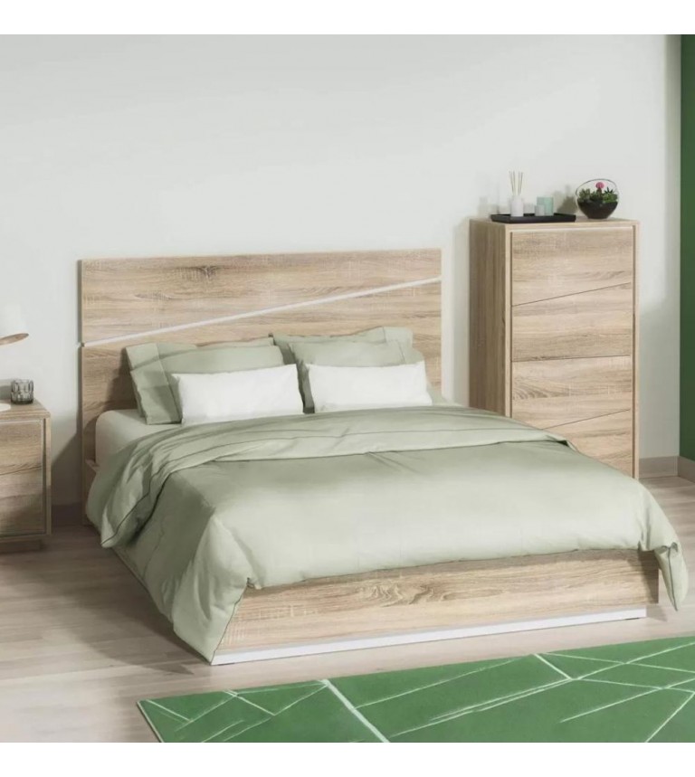 Cama de Casal Málaga - Carvalho Natura /Branco