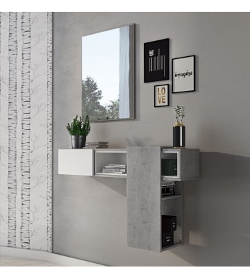 Móvel Hall c/ Espelho Kendra - Branco/Cinza